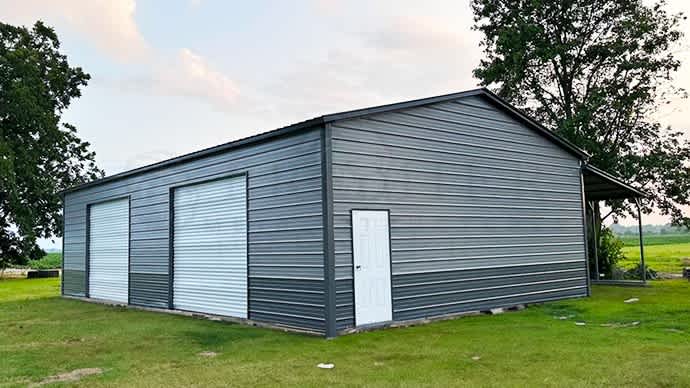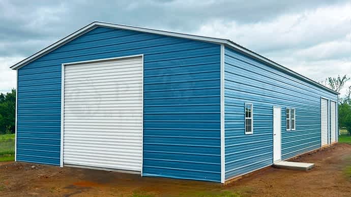 This 30’x50’x12’/9’ Garage with a Lean-to is a spacious and versatile building, perfect for storing ATVs, boats, tractors, and farming equipment. The fully certified structure has a vertical roof to withstand extreme weather conditions. It features: